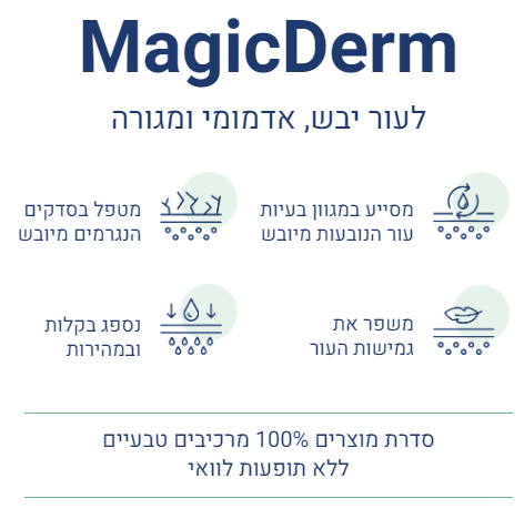תחליב ייחודי לעור מגורה, אדמומי ויבש המתאים לכל הגוף, מסייע במגוון בעיות עור הנובעות מיובש